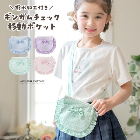 フリルとリボンがアクセントの、 実用的でかわいい撥水移動ポケット
