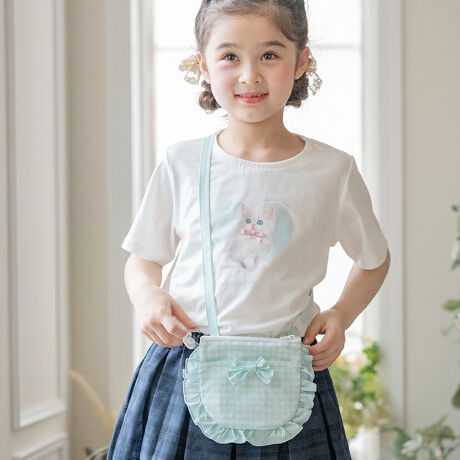 フリルとリボンがアクセントの、 実用的でかわいい撥水移動ポケット