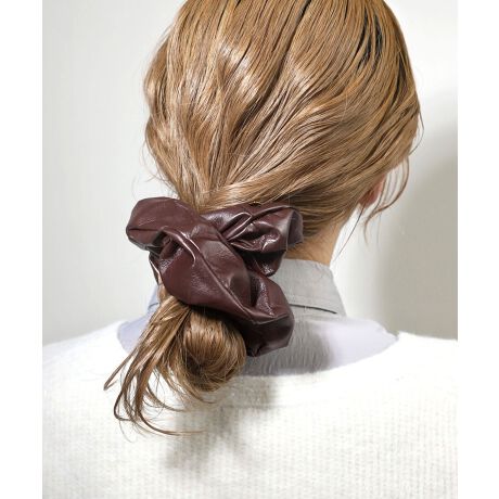 レザー調の生地が、うしろ姿を大人っぽく仕上げるシュシュ。シックなカラーがコーデに合わせやすく、デイリーに活躍します。※ATTENTION※■微細なキズや製造ムラはすべての商品に含まれます。[型番:DG640071H]