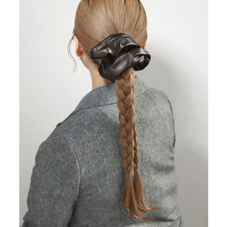 レザー調の生地が、うしろ姿を大人っぽく仕上げるシュシュ。シックなカラーがコーデに合わせやすく、デイリーに活躍します。※ATTENTION※■微細なキズや製造ムラはすべての商品に含まれます。[型番:DG640071H]