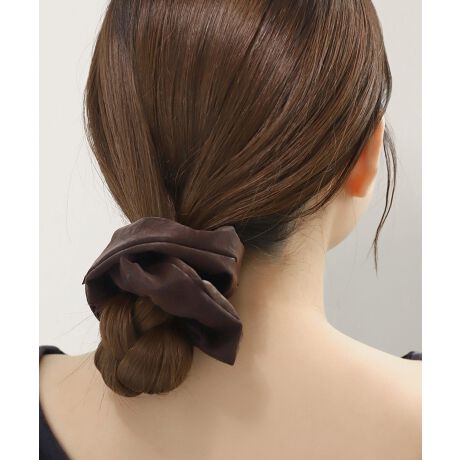 マットな艶を放つフェイクレザーが、上品な雰囲気を演出するシュシュ。