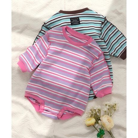 [型番:V134926]apres les cours(アプレレクール)のカバーオール・ロンパース「【リンク】WEB限定 マルチボーダーメロウボディースーツ」は、やさしいニュアンスのナチュラルなデザイン。ベビーギフトや出産祝いの主役にも♪#apreslescours【サイズ情報】70:身丈38 身幅28 肩幅27 袖丈(10分袖)19.5 袖口幅6.5 足口幅1080:身丈40 身幅29 肩幅28 袖丈(10分袖)25 袖口幅6.5 足口幅10.5