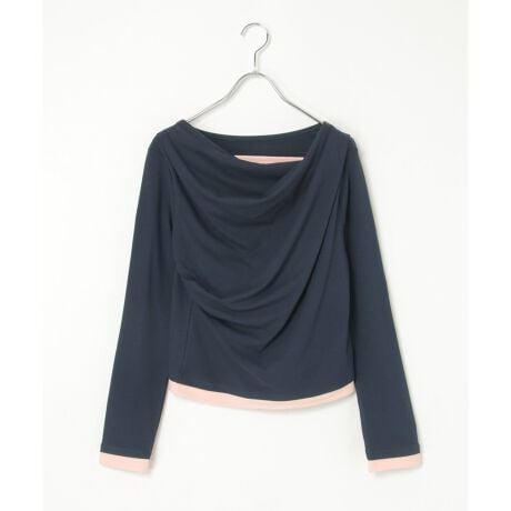 フロントのカシュクールデザインに、配色インナーを重ねたような表情をプラスしたプルオーバー。