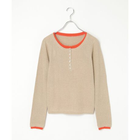 ヘンリーネックのほどよい抜け感に、配色ディテールを効かせたニットプルオーバー。