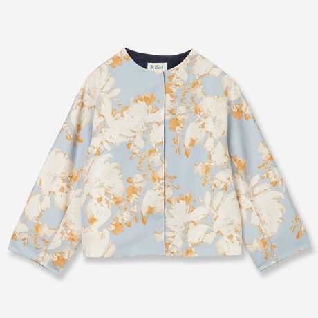 ハリ感のある素材に、水彩タッチのプリントが華やかに着映える一枚。