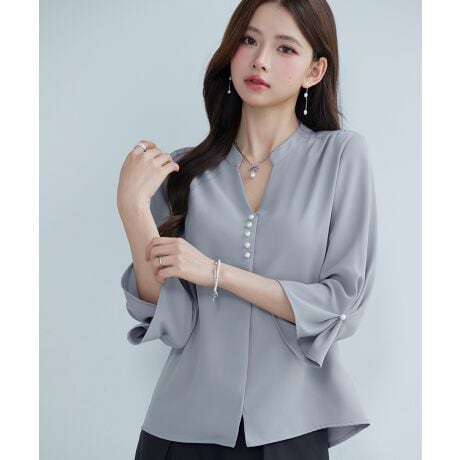 パール付きスキッパーネックブラウス