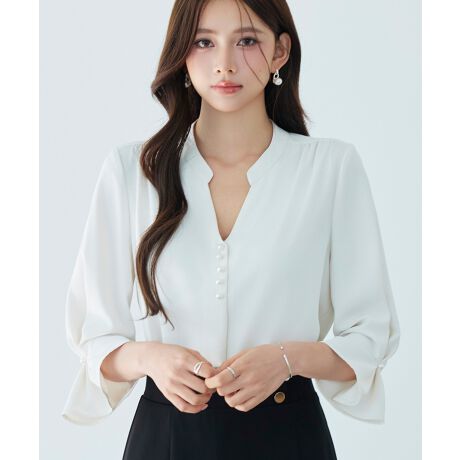 パール付きスキッパーネックブラウス
