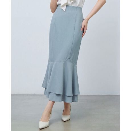 オーガンジー生地ドッキングの二段裾フリルが女性らしいマーメイドスカート。