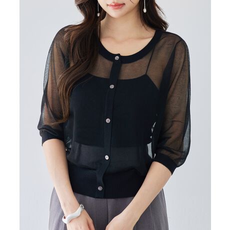 前後2wayシアー編み七分袖ニット