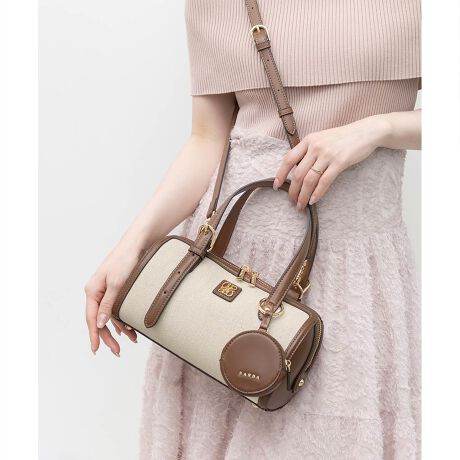 アシンメトリーなハンドルデザインが洗練された印象のボストンバッグ。