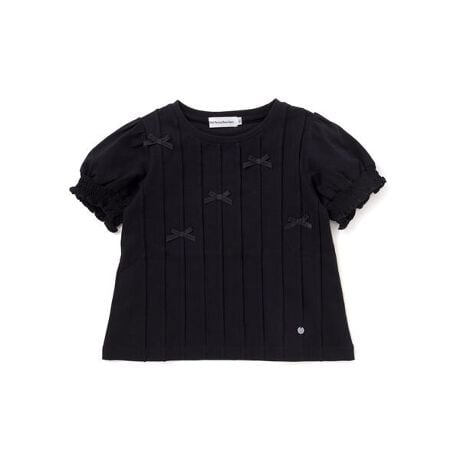 リボン×ピンタックが上品可愛い。ふんわり袖のガーリーな女の子用半袖Tシャツ。