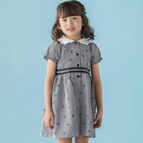 襟付き×ふんわり袖が上品で可愛い、ライン使いのクラシカルワンピース。