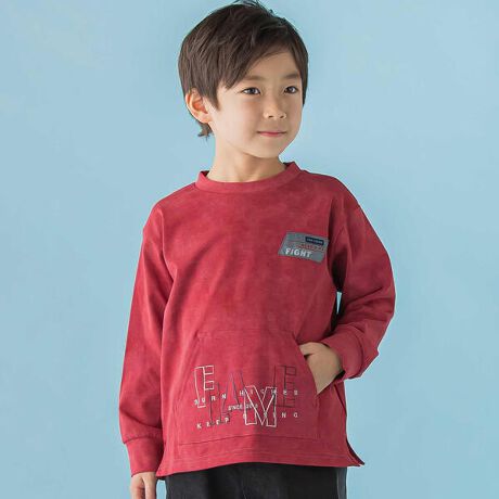 タイダイ柄が映える。刺しゅう×発泡プリントがポイントの男の子用ロングTシャツ。