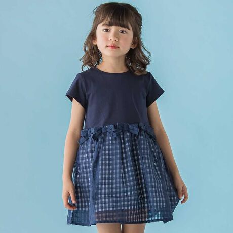 スカート部分には軽やかなシースルーのギンガムチェックを重ね、動くたびにふわっと広がる女の子らしいシルエットが魅力てす。