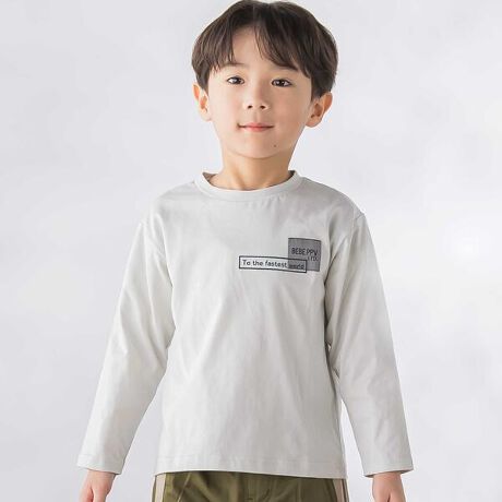 胸元の刺しゅうと立体発泡プリントがかっこいい。男の子用ロングTシャツ。