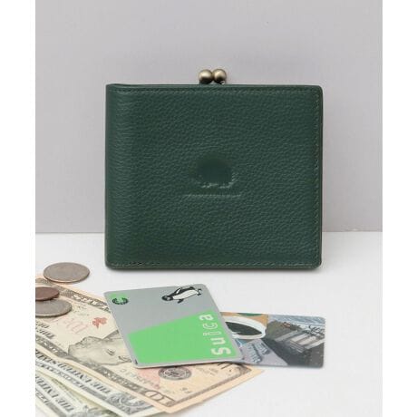 本革 がま口付き 二つ折り財布