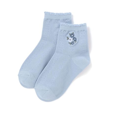 ブーケのようなお花を刺しゅうしたクルーソックス。