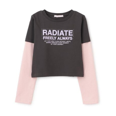 ストーンの煌めきに心惹かれる長袖Tシャツです。一枚でおしゃれなスタイルが完成する、レイヤード風デザイン。カジュアルながらも女の子らしい配色で、コーディネートを可愛く仕上げてくれます。パンツにもスカートにも合わせやすく、デイリー使いにおすすめです。
