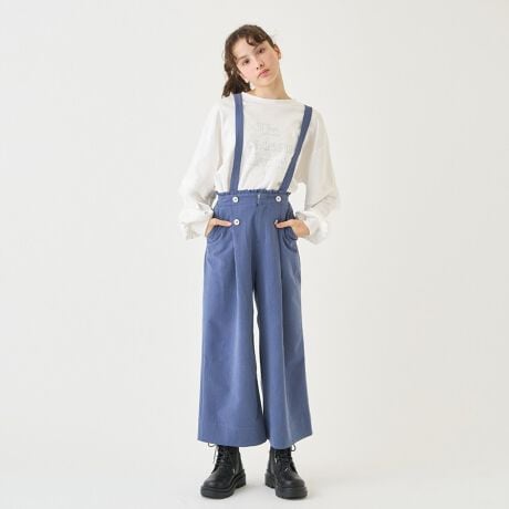 サスペンダーつき釦ワイドパンツ