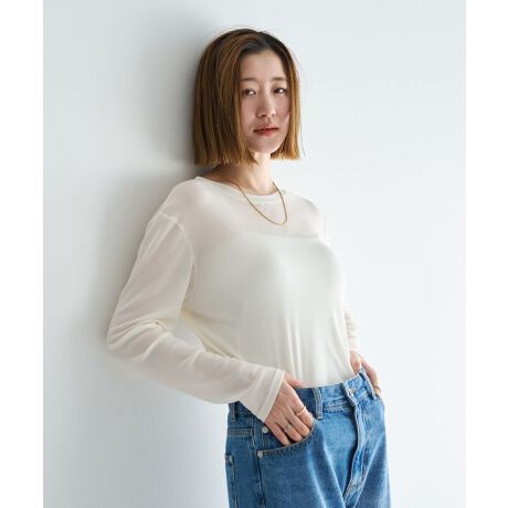 ほどよい透け感が魅力のクルーネックトップス。