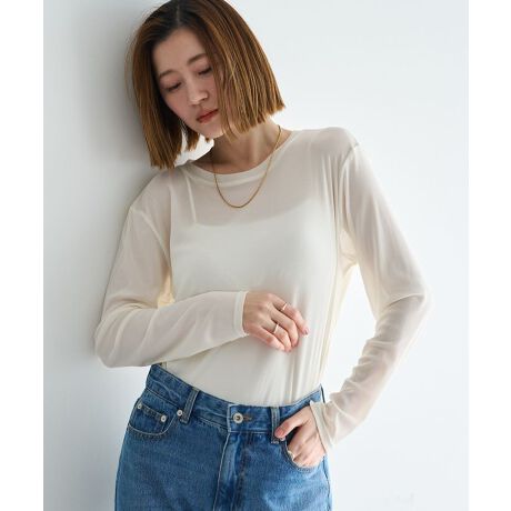 ほどよい透け感が魅力のクルーネックトップス。