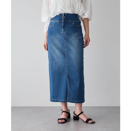 コットンストレッチで伸縮性がありはき心地のいいデニムスカート。