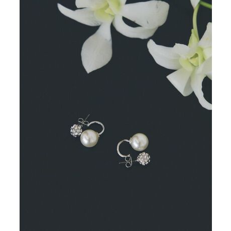 繊細な輝きを放つパヴェボールと、やわらかな光沢のパールを組み合わせたピアス。