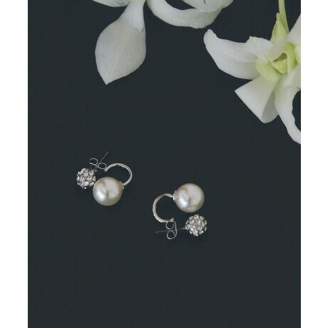 繊細な輝きを放つパヴェボールと、やわらかな光沢のパールを組み合わせたピアス。