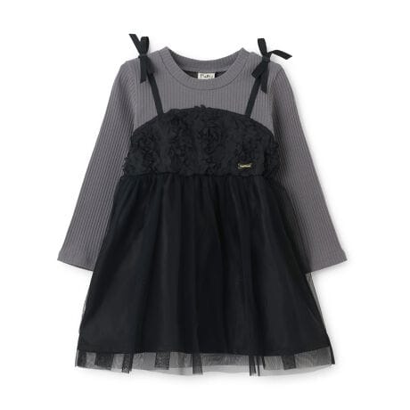 たっぷりと広がるチュールデザインのキャミソールをドッキングしたワンピースです。肩部分はリボン結びで、可愛らしさをプラス。ストレッチ性のあるリブニットを重ねることで、動きやすさも抜群です。スカート部分のみ裏地がついています。【おすすめの着用時期は春夏シーズン】