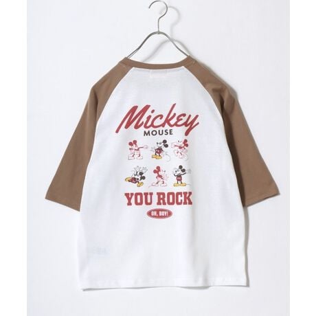 Disney(ディズニー)ミッキーマウス ラグラン七分袖ロンT/アメカジ/ルーズシルエット