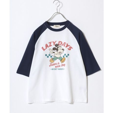 Disney(ディズニー)ミッキーマウス ラグラン七分袖ロンT/アメカジ/ルーズシルエット