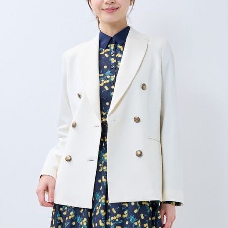 定番として定着したダブルブレストジャケット。今シーズンらしいクリーンな印象を意識したカラー展開で、スタイリングに取り入れやすい一着です。羽織るだけで洗練された雰囲気を演出し、きれいめから程よくカジュアルな着こなしまで幅広く対応します。デニムを合わせて軽やかに、スカートやきれいめパンツと組み合わせて上品にまとめるコーディネートもおすすめです。