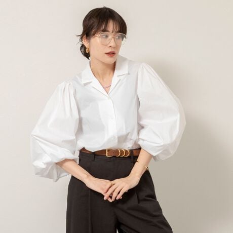 ・立体感のあるボリュームスリーブが印象的な、開襟デザインのシャツ