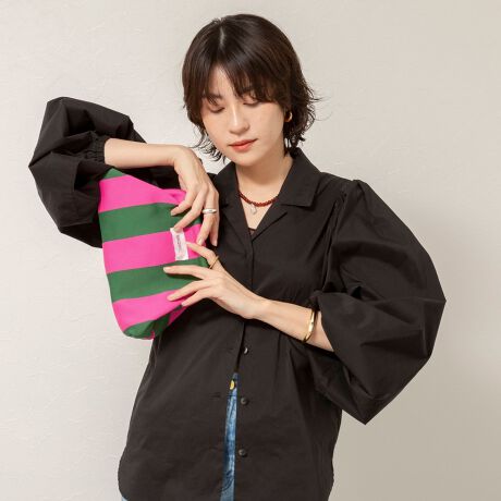 ・肩まわりにやわらかな膨らみを持たせつつ、襟元は開きすぎない設計で、程よい抜け感を演出