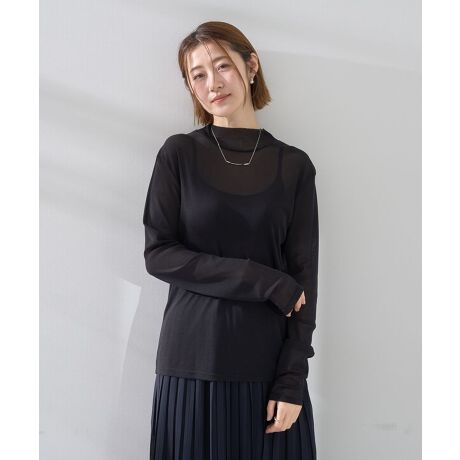 程よいシアー感がコーディネートに軽やかさを添えるハイネックインナー。