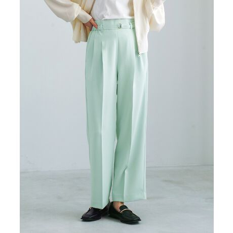サッシュベルトパンツ ワイドストレートパンツ センタープレスパンツ タックパンツ 美脚パンツ きれいめパンツ オフィスパンツ 接触冷感パンツ 洗えるパンツ ハンサムパンツ