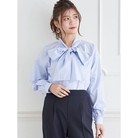 [型番:25580039413]首元の存在感たっぷりなリボンが女性らしさを引き立たせるブラウス。ウォッシャブルやイージーケアなどラクして着用できる機能性素材を使用しています。程よくゆったりとしたシルエットがこなれ感を演出。パンツやスカートなど、様々なボトムスと相性の良いアイテムです。モデル(A柄着用)身長:167cmMサイズ着用モデル(A柄着用)身長:165cmMサイズ着用