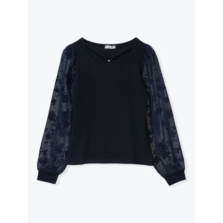 [型番:26550724527]デコルテを美しく見せるスクエアネックが魅力的なプルオーバー。スリーブには花柄のフロッキープリントを施し、上品な女性らしさを演出します。伸縮性に優れたテレコ素材を使用。季節の変わり目のお出かけシーンに大活躍してくれるアイテムです。