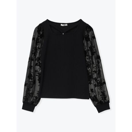 花柄フロッキースクエアネックシアートップス