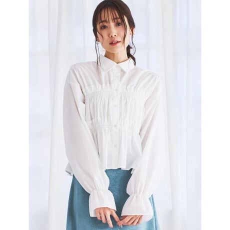 [型番:26560778615]くしゅっとしたシャーリングが表情感を演出するシャツ。短めのショート丈のデザインがウエストラインをすっきりと見せてくれます。カラーによって異なる柄展開にも注目。パンツやミニ丈のスカートと合わせたトレンドライクなコーディネートがおすすめです。モデル(B柄/白着用)身長:165cmMサイズ着用