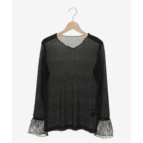 ラメが混じったシアーワッシャー素材に袖口をレースで切り替えた1枚。