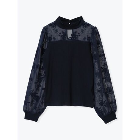 [型番:26550724577]花柄のフロッキープリントにテレコ素材の切り替えを施したトップス。首元はプチハイネックになっているので、露出控えめで上品なスタイリングを演出します。伸縮性のある生地が動きやすさを実現。スカートと合わせたレディライクなコーディネートがおすすめです。
