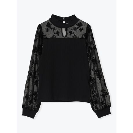 [型番:26550724577]花柄のフロッキープリントにテレコ素材の切り替えを施したトップス。首元はプチハイネックになっているので、露出控えめで上品なスタイリングを演出します。伸縮性のある生地が動きやすさを実現。スカートと合わせたレディライクなコーディネートがおすすめです。