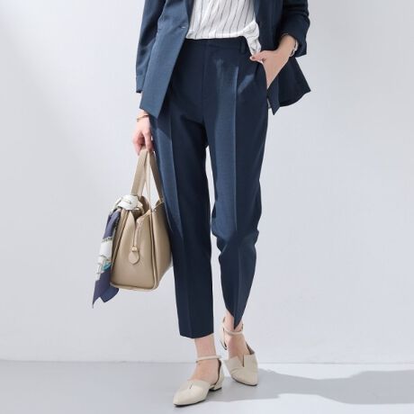 腰周りや裾にかけてのすっきりとしたシルエット感がポイントのテーパードパンツです。