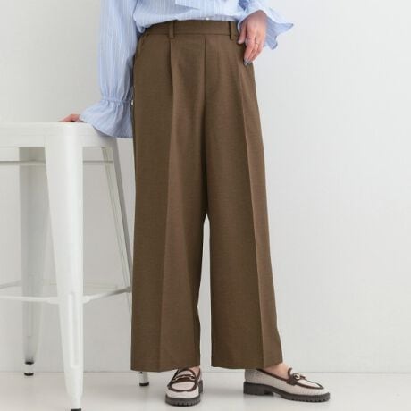 まっすぐなシルエットが脚のラインをきれいに見せてくれて、タックが入っているので穿きやすく、スタイリッシュな印象のワイドパンツ。