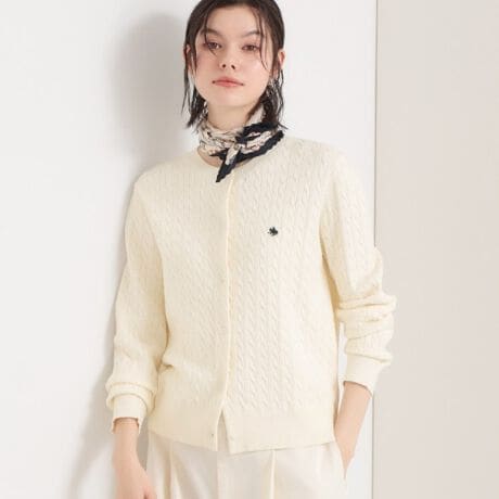 細畝のケーブル柄がクラシカルに映え、すっきり見えするベーシックな一枚。