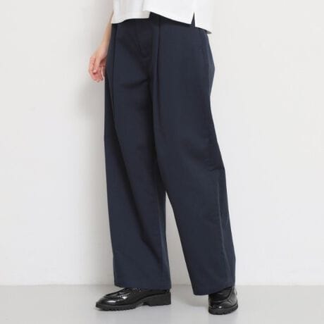 ややハイウエストに、ベルトライン直下の深いタックでウエスト周りに表情をプラス。