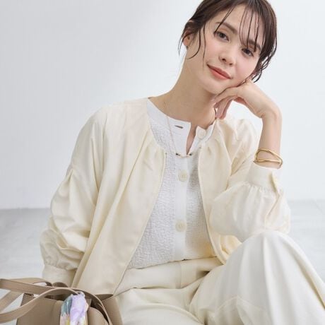 ブルゾンとブラウスの要素を融合させた軽やかなアウターです。