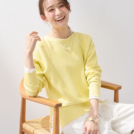 ハイゲージでありながら表情感のある編地で、袖は編み続きでできる一番キレイなボリューム感を出し、裾は優しくラウンドさせているのでさらっと着るだけで女性らしいシルエットにしています。