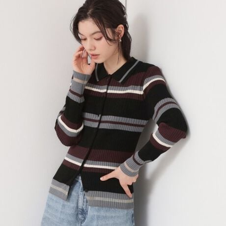 フロントのボタンが上品なアクセントになり、タイトめでスッキリとしたシルエットが大人顔にまとめます。